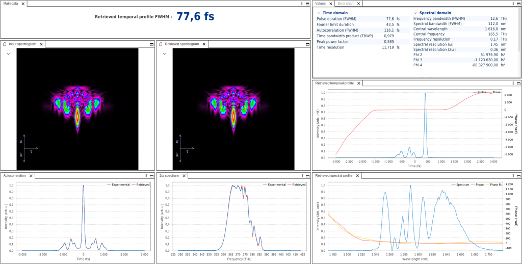 通过直观易用的FROG软件,实现了从FROG迹象图像快速精准地提取超短脉冲。该软件内置经过优化的提取算法,支持实时获取时域和光谱信息。